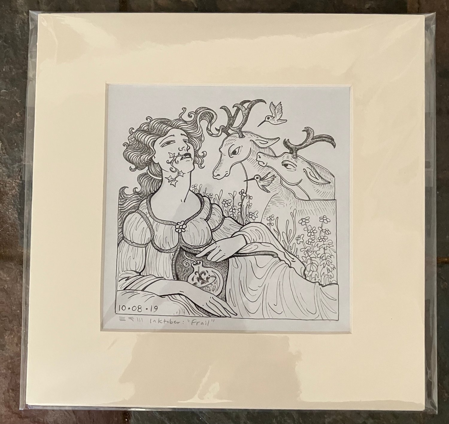 Ink drawing on paper, matted, unframed, 2019 Image size: 5 x 5 inches Mat dimensions: 8 x 8 inches