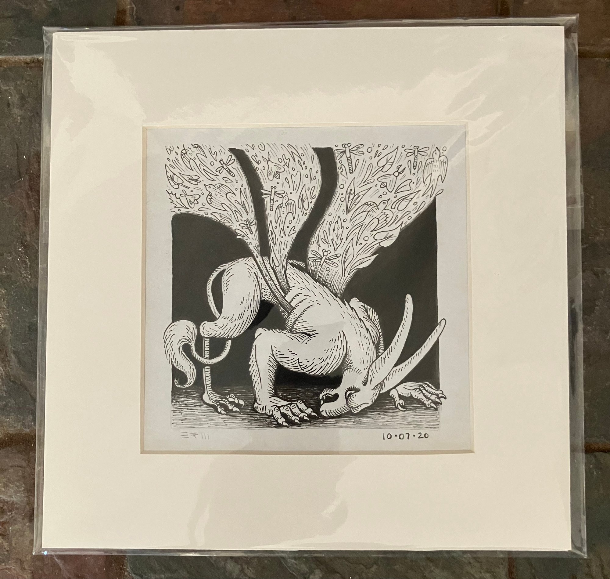 Ink drawing on paper, matted, unframed, 2020 Image size: 5 x 5 inches Mat dimensions: 8 x 8 inches
