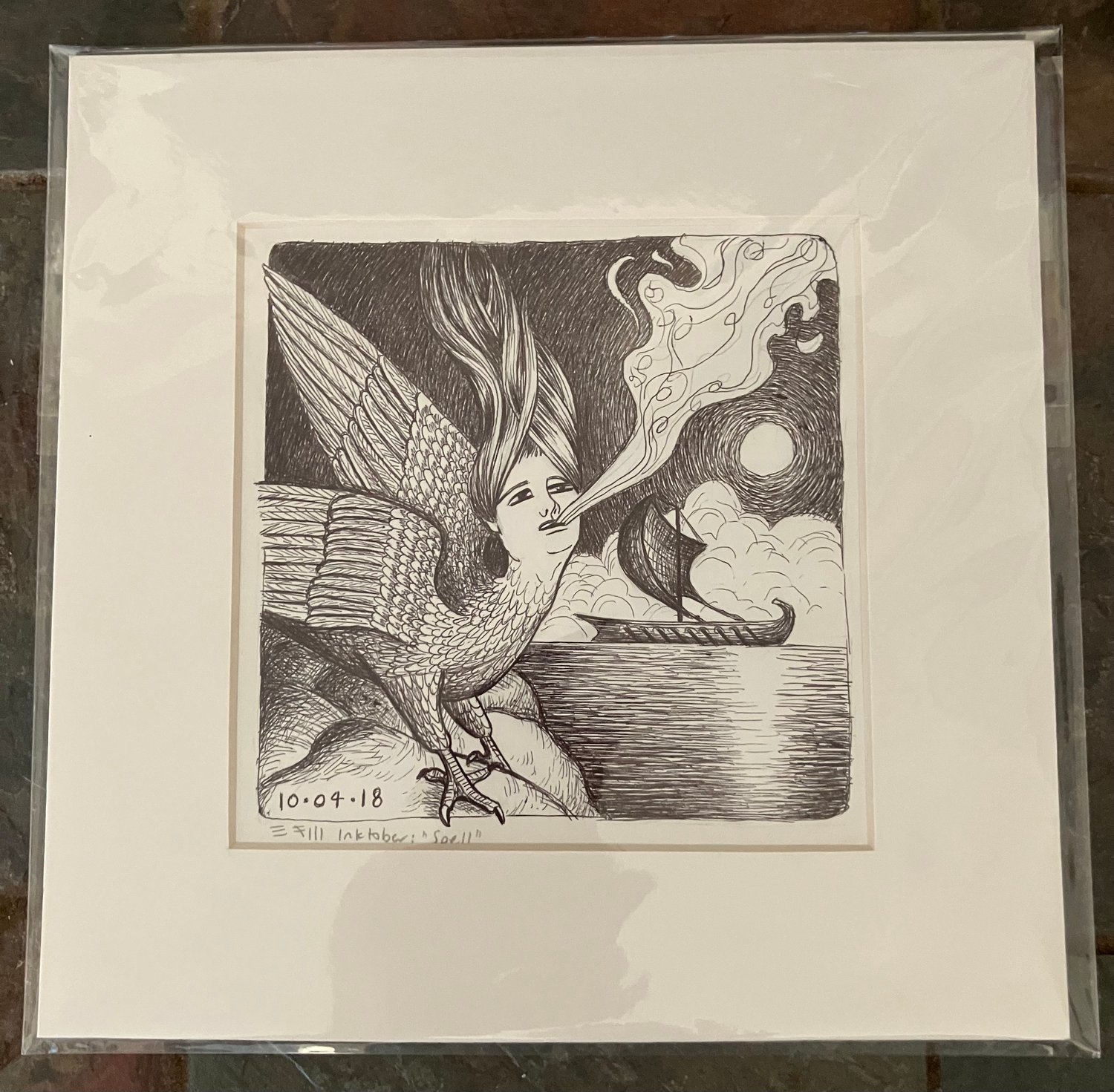 Ink drawing on paper, matted, unframed, 2018 Image size: 5 x 5 inches Mat dimensions: 8 x 8 inches